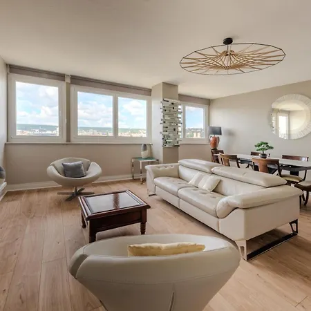 Appartement Tout Confort A Nancy obejmuje miejsce do siedzenia, a także widok na miasto. Obiekt zapewnia noclegi z parkietem na podłodze. Obiekt noclegowy posiada również prywatną łazienkę z wanną i kabiną prysznicową walk-in. Ponadto w pokojach znajdują się ręczniki.